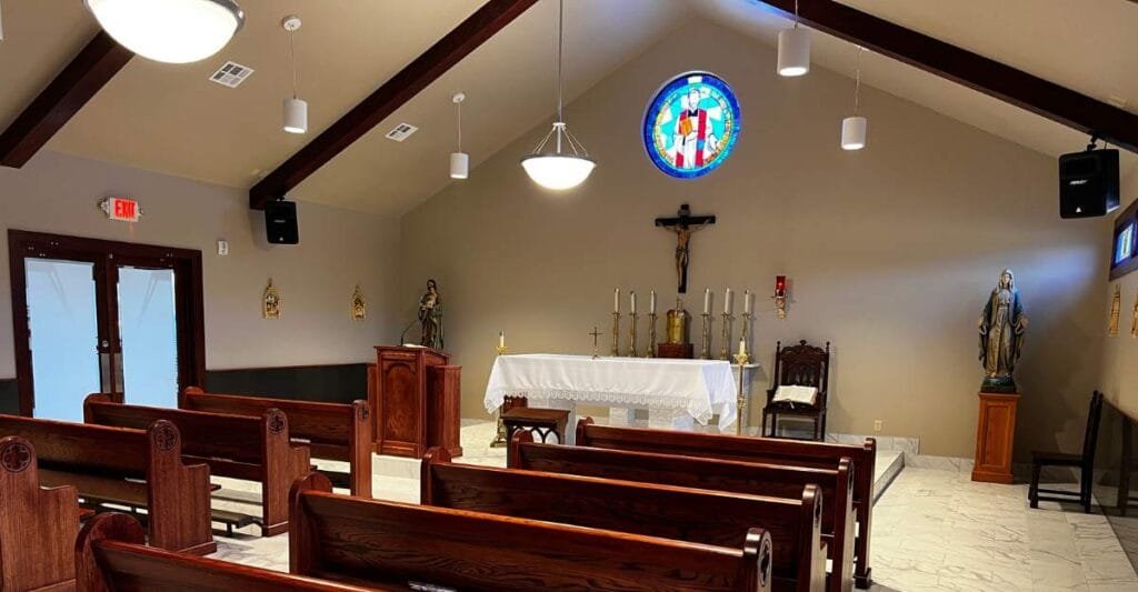 Today, Holy Cross has been rebuilt into a beautiful church serving Madill, OK and surrounding communities.